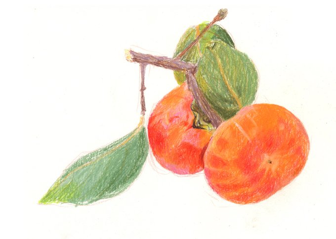 今日はバルグはお休み。 庭の柿がたいそう素敵だったので 色のクロッキー。 赤とピンクとオレンジが混在して鮮やかでした。 描くのは難しい〜 #色鉛筆画