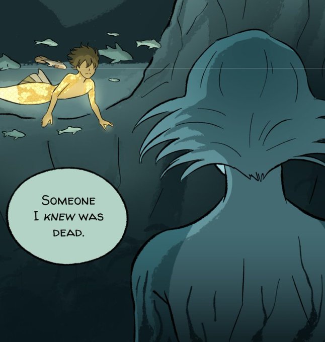 With how much Kappa has swam around the ocean, you know that thing is not something to be messed with when he makes that face. Just pure terror in one panel, even the fish look freaked out. (Also, tiny Arp/Worm vibes😭)