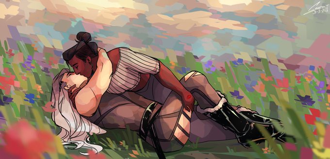 @noreaumo wrote a wholesome beauyasha fic about yasha getting an oversized sweater for her bday, and i went bonkers. so here’s some doodles based off of that 💕