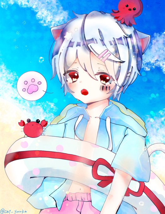 🌞🌴夏のまふまふさん(LINEスタンプのイラストより)🌺🐠