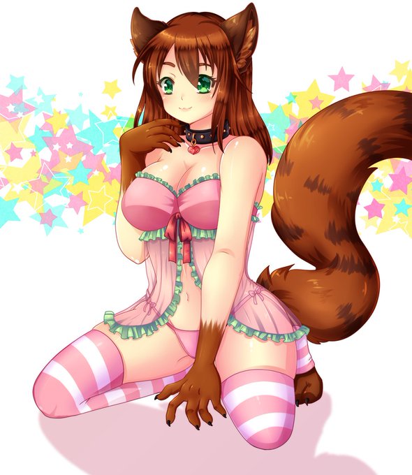 @ToasT_Arts It's actually just garters around her legs. She's half furry, from mid-thigh to foot, she's kitty.