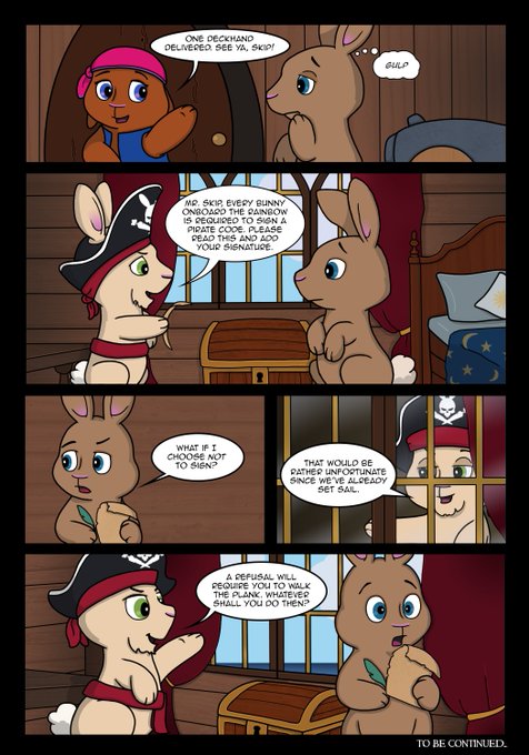 This week bunny pirate silliness has an interlude. We hadn't seen Pip in real time since it started. Mention of pie. ;) #skipandpip