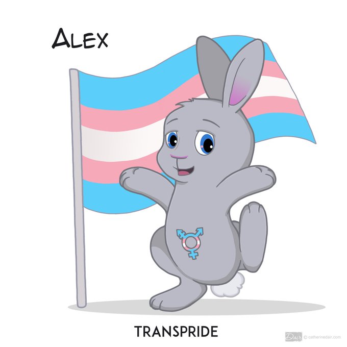 New redesigns of all the Pride Bunnies posting through this month. Meet the new version of Alex, the Transgender Pride Bunny! #PRIDE2017