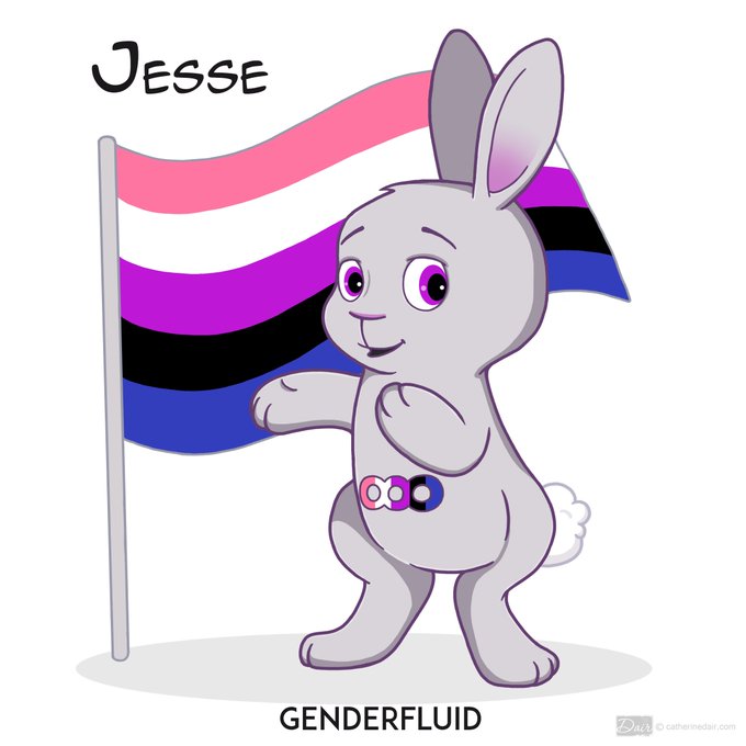 Here is the newly updated Jesse, the Genderfluid Pride Bunny. The plush will follow after the fabric I'm ordering gets delivered. #Pride2017