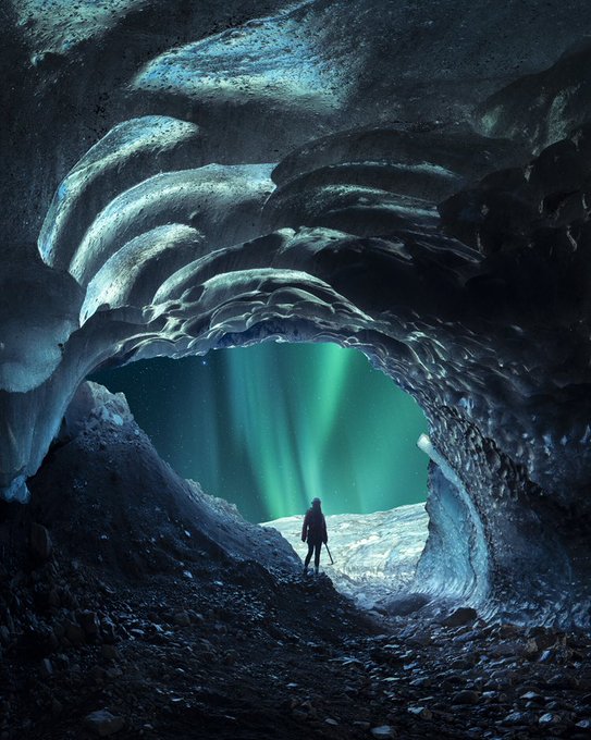 Exploring Icelandic ice caves on remote glaciers. Crossing a glacier can be quite dangerous and requires skills. Under each step there can be a hidden crevasse that will suck you in. You gotta be hyper vigilant and trust yourself #nft #NFTs #NFTartist