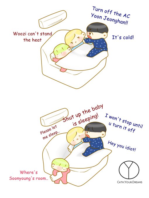 Jeongcheol's married life. Illustration of 95L convo ( trans by @wonwooimnida ) #seventeenfanart #jeongcheol #jeonghan #seungcheol #woozi