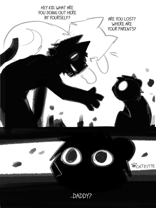 until one day an adult noticed Panda being alone and approached him, a grey cat with blue eyes.... that's when he met Daniel.