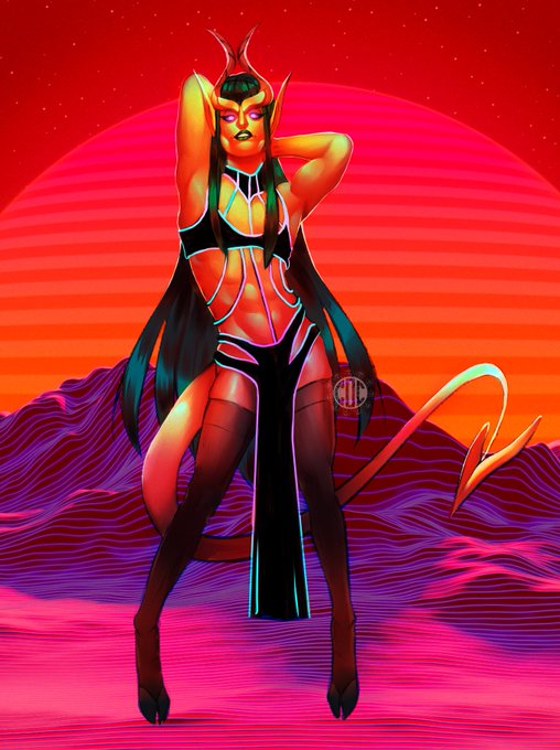 @sylessae Mayhem; they/them, a Tiefling Eloquence Bard--they work as a Burlesque performer. I love them so much.