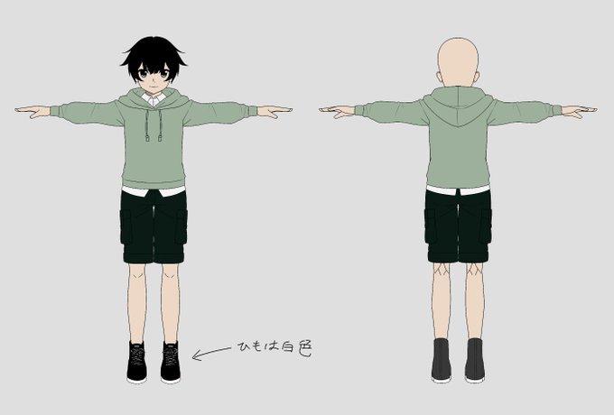 作品名「モスグリーンパーカー」 ・白シャツ ・黒パンツ ・靴ワンポイント横にロゴか何か◯◯バース的な #カスタムキャスト #衣装新色コンテスト