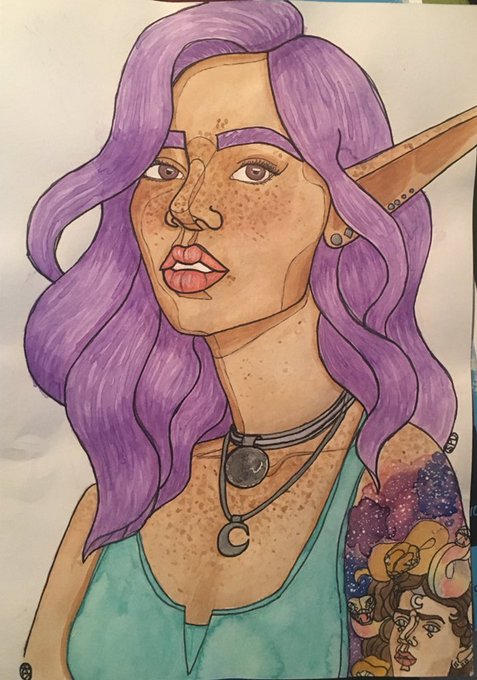 @fl0werb0ys Dima Dewfreckle, eladrin bard extraordinaire. Will serenade you with Russian folk music on her balalaika while her magic tattoo winks. Loud, bi, and charming.