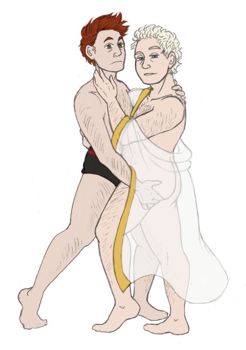 @wargoddess9 and i did it again but in reverse!! they did the beautiful and extremely Soft lineart (i love it so much) and i did the color! #GoodOmensFanart #ineffablehusbands