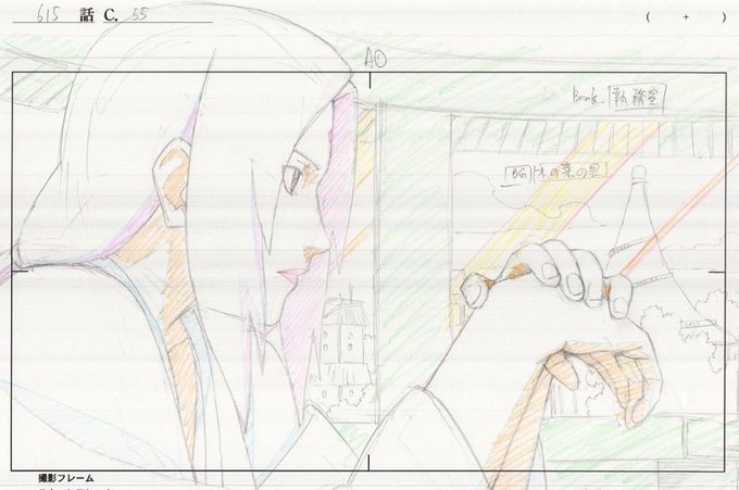 #NARUTO これで、僕にとって終わりました、皆と一緒にOAで699を観ました。今回4カットだけ担当しました、僕と縁が深いシーンです。二年前ネジが最期の部分は僕の担当なので、今回は墓参りまでちゃんと天国へ送る。感慨深いが、まだ仕事あるので、次話しましょう~本当にお疲れ様でした
