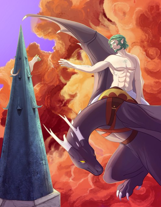 I present to you, my dear fellow Seteth simps, trans!Seteth for your consideration. This piece was for @OfMewsandMen! Since he's rescuing a kitty from a high spire of Garreg Mach, I wanted to make his wyvern very gargoygle-esque.