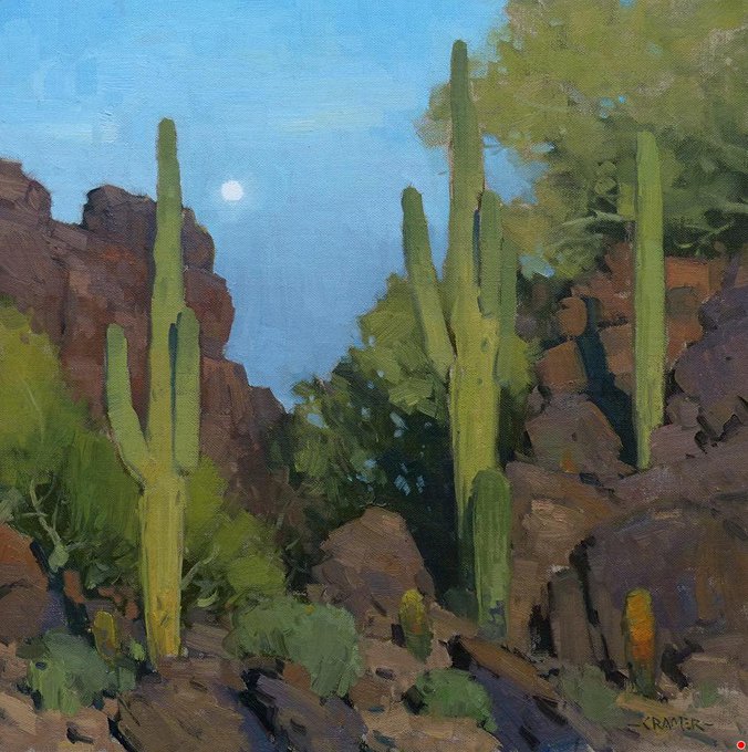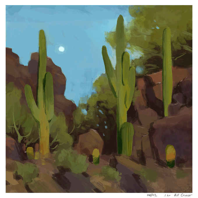 I'm finding his paintings are really good for me to start out with; he's already edited down the scene so much that it's relatively easy for me to get my bearings and lay down the basic idea in the first 30 minutes of the painting.