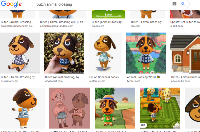 omg ;__; if you google search butch animal crossing my old art shows up this is so cuuuute im miss HIMMM <3 :(