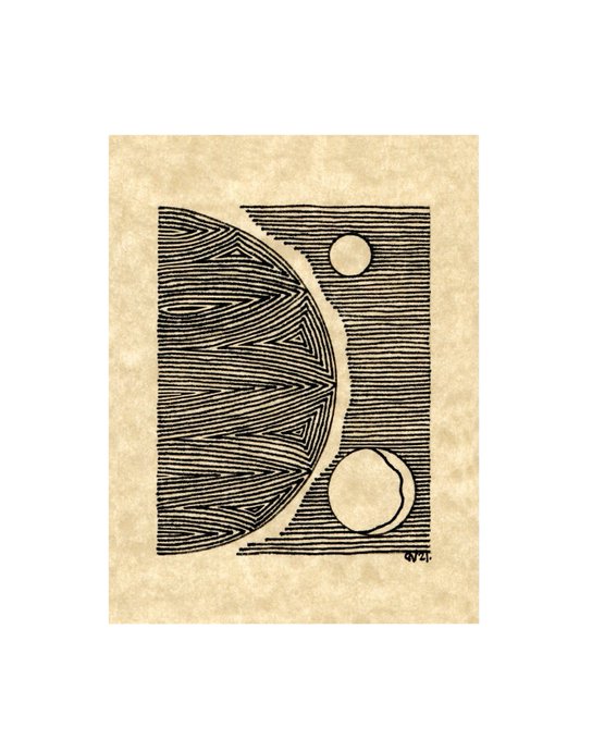 Drawing made in a traditional way, digitized and inverted to negative If you invert it, you will be able to see the appearance of the original pen drawing. Symbolically its a way of seeing another version or a parallel world hidden in the same work