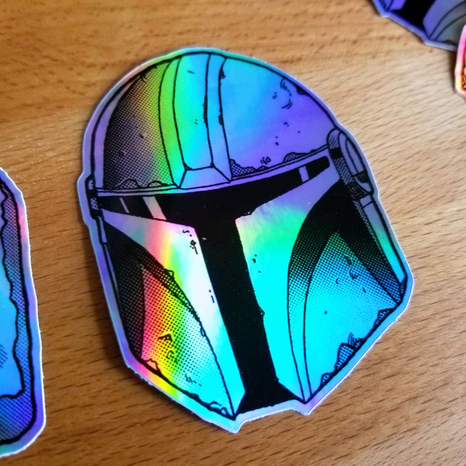 After a long time of waiting they're finally here! Iridescent holographic Mandalorian stickers have arrived at my shop and they are super shiny 😎💫🌈 Check the link in my bio if you want to grab some! This is the way. #Mandalorian https://t.co/VwSWt8yiDM