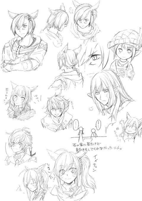 練習多め、サイドテールに振り回された月でした…🙄w #今月描いた絵を晒そう #FF14イラスト