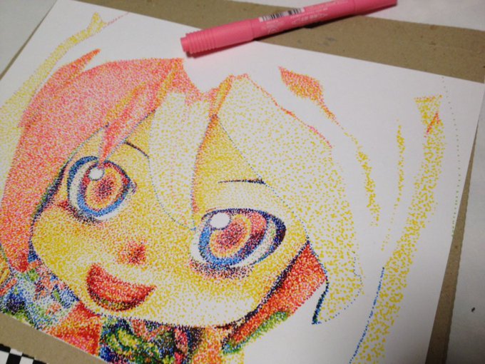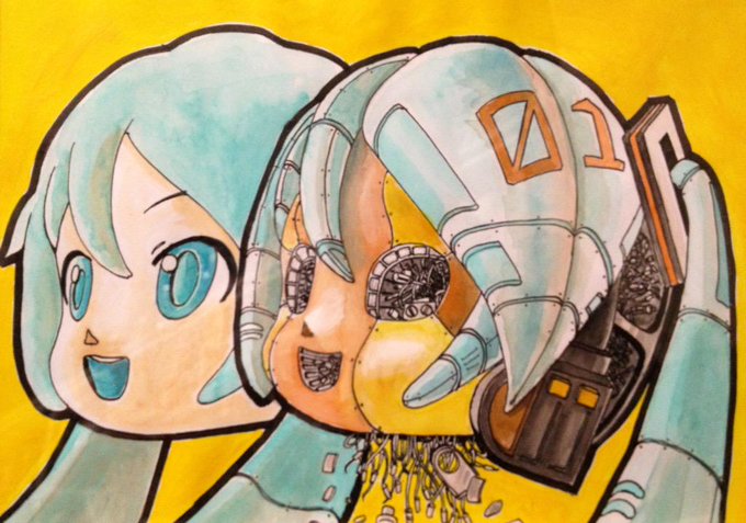 クレパスやらサインペンやらボールペンやらアクリル絵の具やら、色々使って描いてます。 #ミクダヨー展