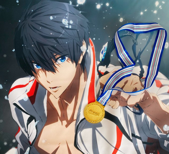 せっかく2つ頂いたので1つは世界の七瀬遙タペストリーと一緒に飾ってる🏅似合いすぎるんだよな………