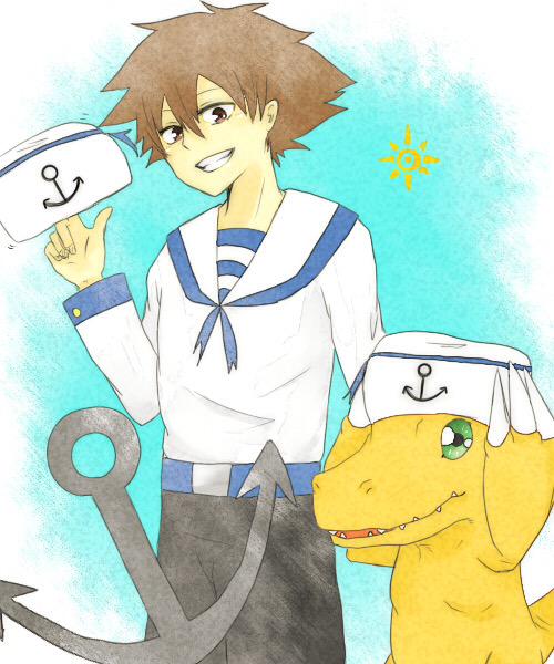 素敵タグをお借りしました>< めっちゃ楽しかったです…٩( 'ω' )و!! 太一さんほんと青色系と太陽似合うね! #デジモンキャラマリン化企画
