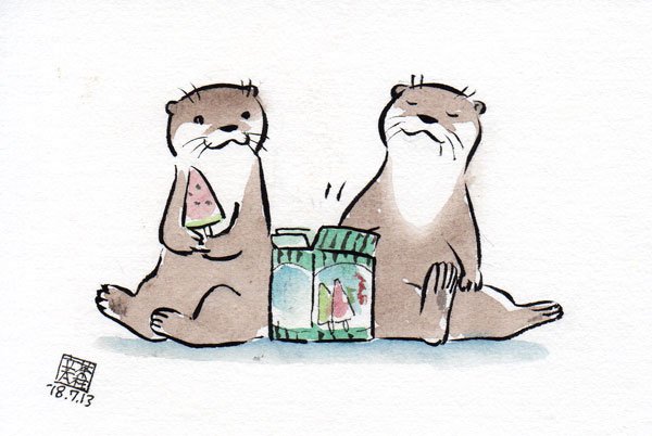 落書きもういっちょ。チビウソとラッコ。ラッコ大きすぎたかな?