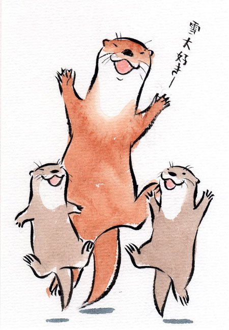 今日の落書き。今夜はテレ東「池の水全部抜く」あるんだ! 落書きは単に魚取ってるカワウソの絵になっちゃったw。実家行く、番組始まっちゃうしで大急ぎで描いたった。