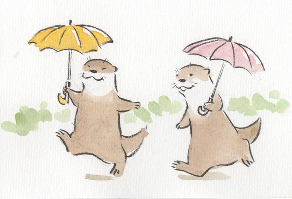 今日の落書き。雨が降ったのでカエルが描きたかったのよ。カワウソとカエルを仲良しで描いてるけど餌なんだよね・・・ネコとネズミの組み合わせと同じか。