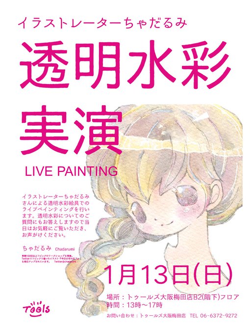 【水彩実演】 ・1/13(日) ・13時~17時 ・トゥールズ梅田店(階下フロア) 「透明水彩絵具の実演」します。 自由にご覧ください☆ 質問等あれば声かけてくださいね~🎵 宜しくお願いします(^-^) #水彩 #水彩イラスト #ウインザーアンドニュートン #コットマンハーフパン #watercolour #ilust
