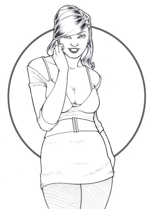 Pinup pencilled, inked and colored on an IPad Pro with Apple pencil, using the @MediBangPaint_e app.