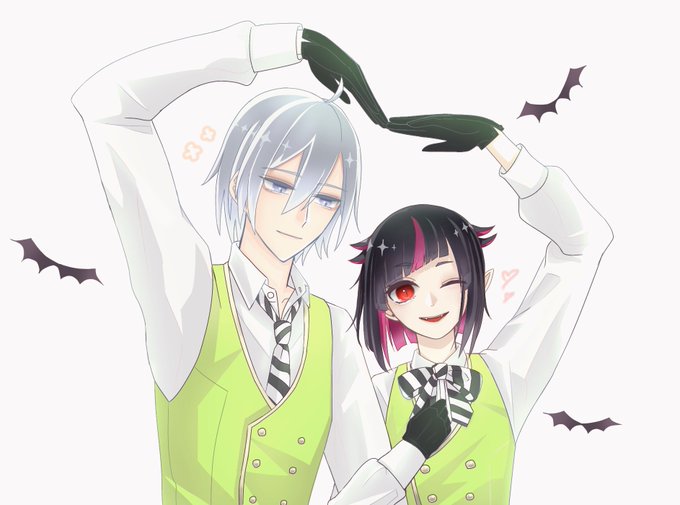 投票のシルリリ! 🦇は全力で楽しんで、そんな楽しそうな姿を見て嬉しい⚔のイメージで描きました…!圧倒的プリクラ感…