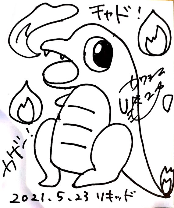 以前描いて貰ったヒトカゲと比べると伸び代が半端ない。