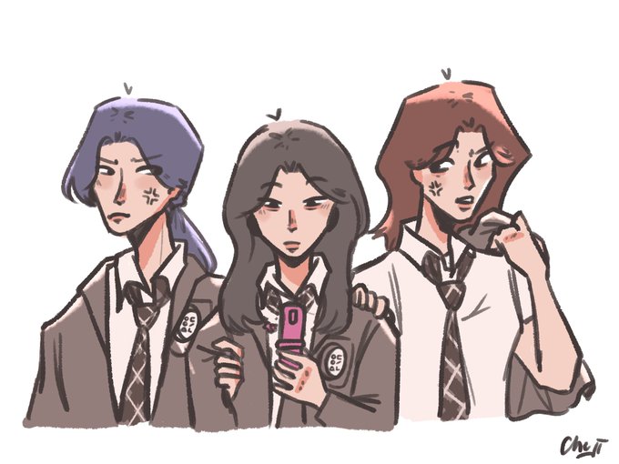 *throws you unnie line hs au* #LOONA #이달의소녀 #loonafanart #Jinsoul #ViVi #Yves #Haseul