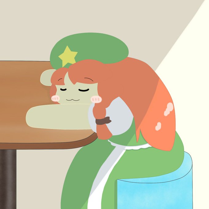 机に突っ伏してシエスタする美鈴