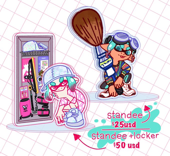 pkmn comms can be new lines or customs; splatoon standees can be OCs or in-game models! And if you have a standee already, you’re welcome to add another pose of your character to interchange them 👀