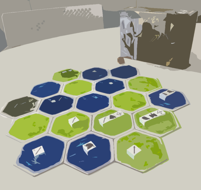 シュラハの広告用画像でアート効果いじってたら、ちょっとお洒落な感じになりました。 アート効果変えるだけで、写真が絵になりますね。 #ボドゲ