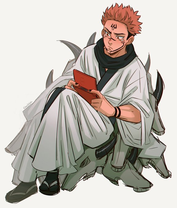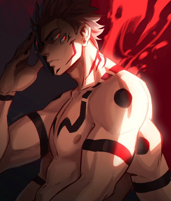 my sukuna art: sukuna staring intensely at you while looking hot