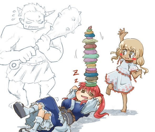 【ネタバレ注意】 東方新キャラ、このジャケットに出てたコだけ描いてみましたが一応ネタバレ注意? 崩そうにも崩せない積み石