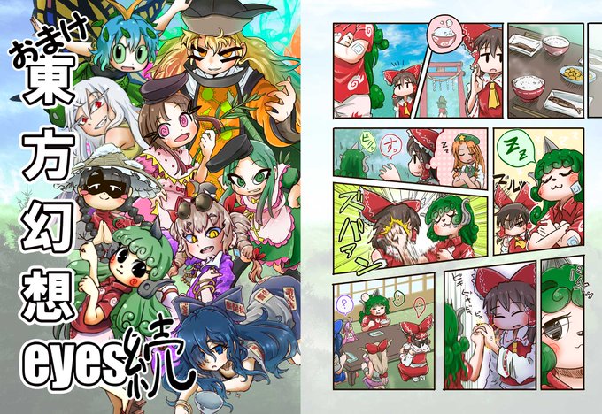 東方本編でどんどんキャラクターが増える中「東方幻想EYES」の続編本を出すにもボリュームが無くなっちゃうなぁと思っていたのですが、こうやって悠々遊歩のおまけとして消化すればいいじゃないかと思い立ち載せてみました。