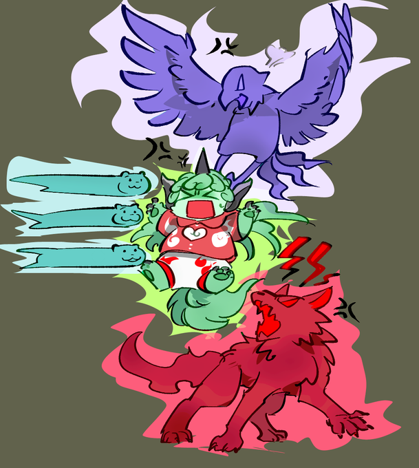 去年のイメージ下書きと完成結果 4枚目ラフは「自分のキャラを忘れた久侘歌」のつもりで描いたのでちょっと別物ですが クラピッピもっとうまく描けたならば…