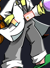 leon is the school's volunteer tech support, and yusha is a cafeteria employee. yusha had to wear a vest to hide yu-mart branding, so leon dyed a dress shirt to wear with one so he wouldn't be alone