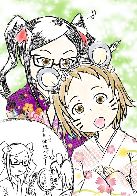 頃合いを察し年賀状絵うp。3枚目を思いついた時は電気が走った