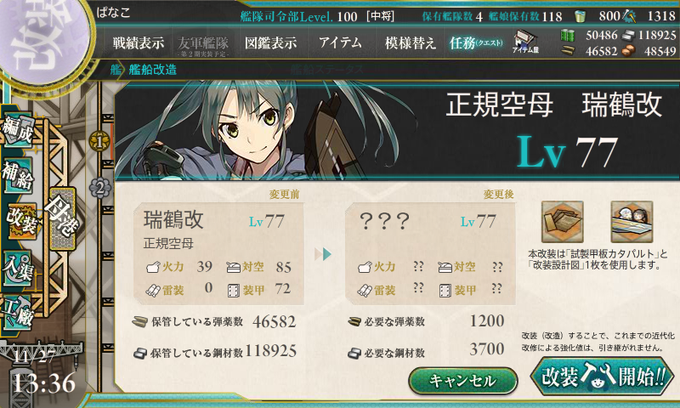川内ちゃんも見守る中、瑞鶴改二に改造完了!! 瑞鶴、お誕生日おめでとうっヾ(*~∀~*)ゞ オメデトォー