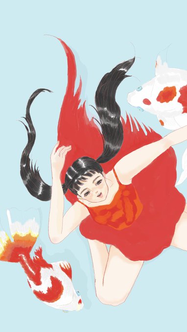 近所で、夏の終わりを告げるようなおおきなお祭りが開催されてる。 #金魚すくい #祭り #イラスト #絵 #放生会