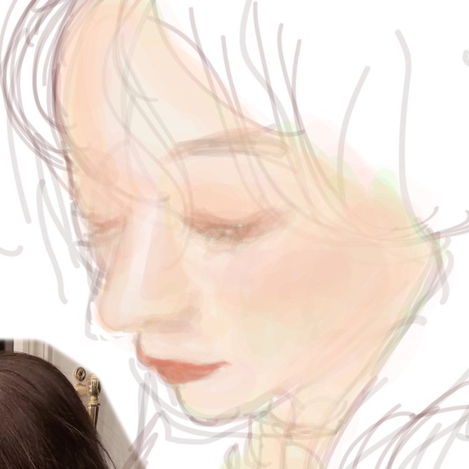 自分の感覚で描いてるから合ってるかわからないけど、下には緑を仕込んでます意味あるかわかんないけど! 肌には紫とかも混ぜてみらいちゃんの透明感に近づけたいと思いながら描きました♡ @miraisaitou みらいちゃんの無理ない範囲でお手紙の送り先求めてます💗💗🍑💗