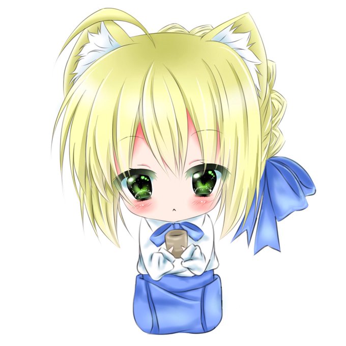 ただいまフェイトシリーズの猫耳バージョンをちびキャラで描いてまして、とりあえずセイバー描いてみました(੭ु´͈ ᐜ `͈)੭ु⁾⁾