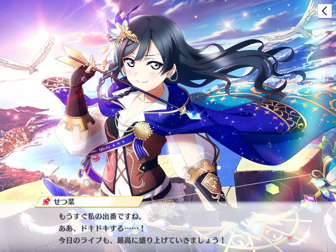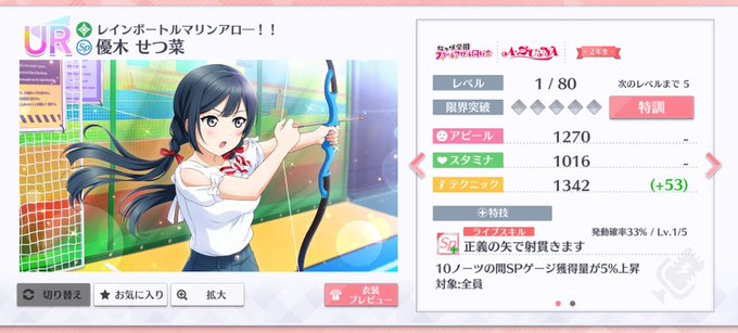 イベURせつ菜ちゃんゲット〜!🏹 イベント期間中にせつ菜誕あったから、イベントUR誕生日に合わせてせつ菜ちゃんだったのか(気づくの遅い) 弓を引いてるせつ菜ちゃんも可愛いな!🙃 はて、ラブアローシュートとレインボートルマリンアローどっちが強いのか🤔🏹? #スクスタ
