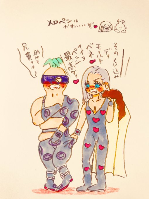 メロペシ(ちょっとプロペシ) 昔描いた絵のリメイクのつもりだけどペッシがぬいぐるみってくらいしか合ってないほど構図違う… 2枚目は色彩弄らず原画に近いものでバストアップ