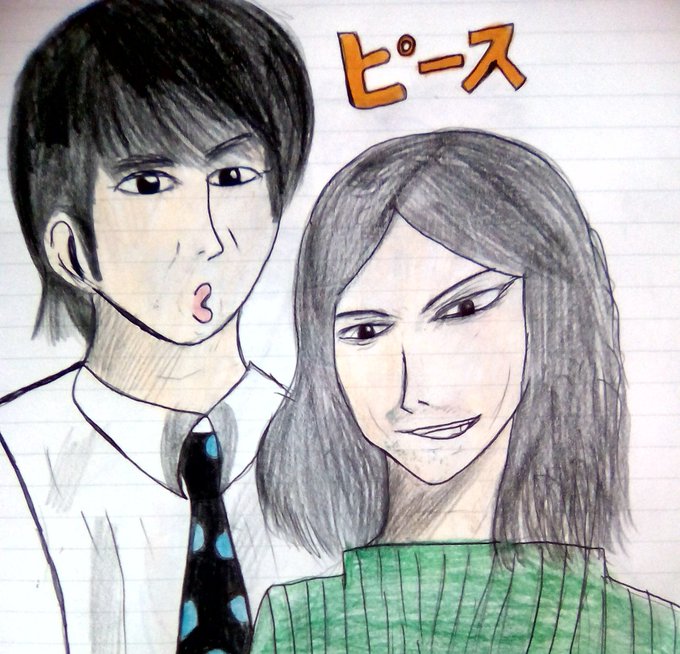 ピースのお二人を描いたやつです又吉さんはイケメン過ぎて私の好みタイプです(=^_^=)