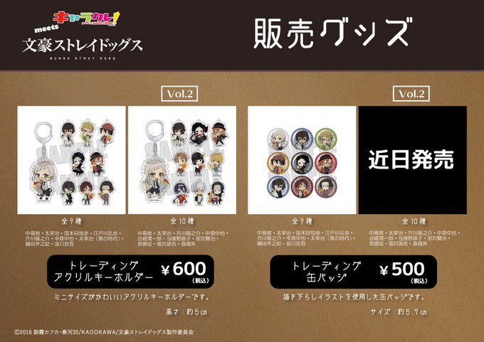【新グッズ情報】5/1(月)より新グッズが登場!「文豪ストレイドッグス トレーディングアクリルキーホルダーvol.2」(全10種・税込¥600)発売!前回コラボで販売していた「文豪ストレイドッグス アクリルキーホルダー」(全9種・税込¥600)も販売致します。